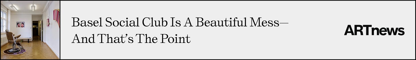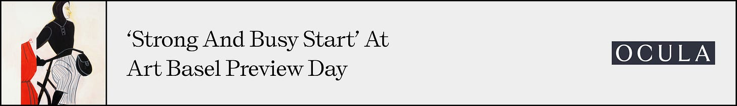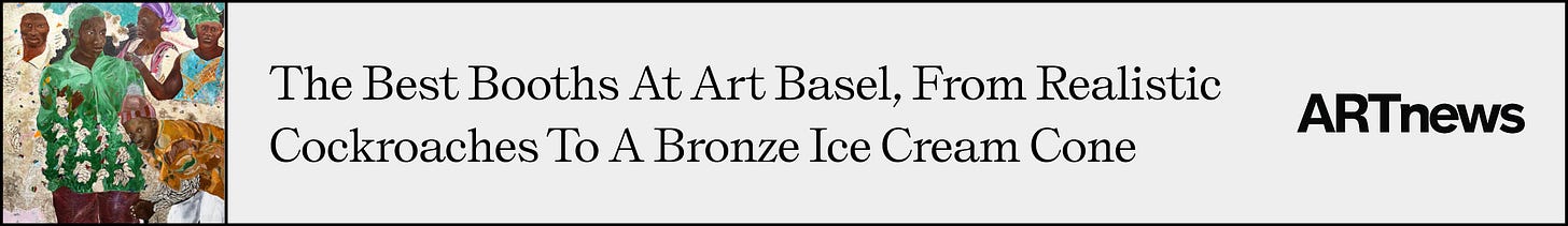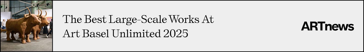 I hope you enjoyed exploring Art Basel through these stories as much as I did. Next week, I will make good on my promise—with a roundup of must-see summer shows from around the world.