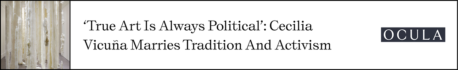 Now, for our regularly scheduled programming, these were the top art world reads of the week: artist interviews, exhibition reviews, and pieces showcasing artworks that actually stuck with me: