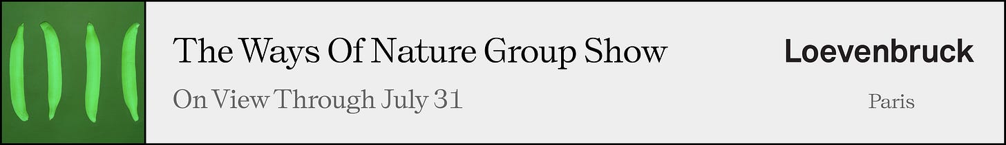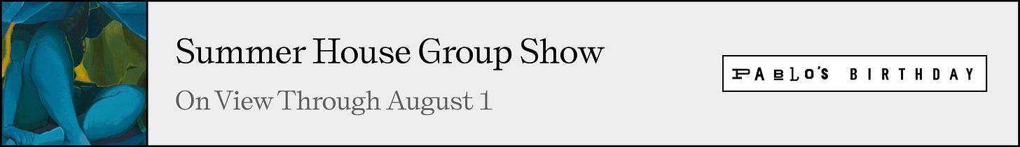 This week, I’m taking a break from our regularly scheduled programming (but, as always, you can see my week’s saves here) to round up the best summer shows on view now through the end of the season. I know there’s no shortage of “must-see” exhibition guides out there—consider this one more to add to the pile. These picks come from weeks of art reading and new spelunking across ArtForum’s Artguide, exhibits in new york, See Saw, Ocula’s City Art Guides, and the internet at large—with a conscious effort to avoid repeats from past issues. While many galleries are already starting shuttering for summer, some of the year’s most compelling shows are still in full swing.