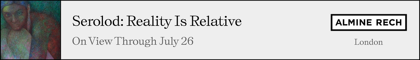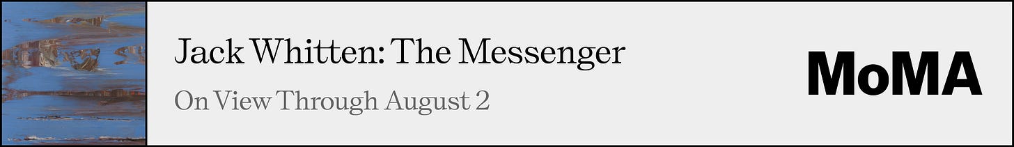 In past issues, I’ve covered Rashid Johnson @ the Guggenheim, Amy Sherald @ the Whitney, Robert Mangold @ Pace, and Ben Shahn @ The Jewish Museum—all must-sees. But in the interest of keeping things fresh, these are my current picks, from major museums to lesser-known downtown galleries. Although two of my favorite shows of the year closed last week (Michael Armitage @ David Zwirner & Casey Bolding @ Polina Berlin Gallery), there’s no shortage of heavy hitters to carry us through the summer: